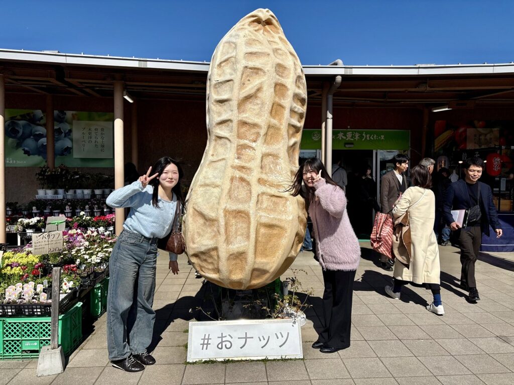 今回の見学を通して、道の駅は地域の商品を販売するだけでなく、売場づくりそのものによって地域の魅力を伝えていることを学びました。特に木更津うまくたの里では、落花生やせんべい、旬のいちごなど千葉らしい商品が多く並び、試食やスイーツも充実していて、多くの人でにぎわっていました。商品のランキング表示やオリジナル商品の展開もあり、来訪者が楽しみながら商品を知り、手に取りたくなる工夫がされていると感じました。今回のフィールドワークでは、道の駅は単なる販売の場ではなく、地域の特色をわかりやすく発信する場でもあることを学ぶことができました。